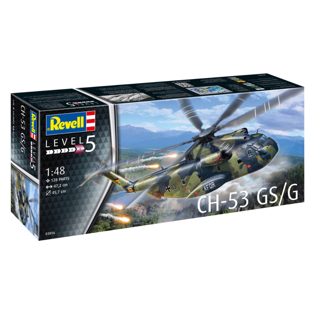 In order to meet the operational requirements, the CH-53 GSG heavy transport helicopter was equipped with an EloKa system. Scale 1/48. 128 parts. 47,2 cm length. Suitable from 13 years.