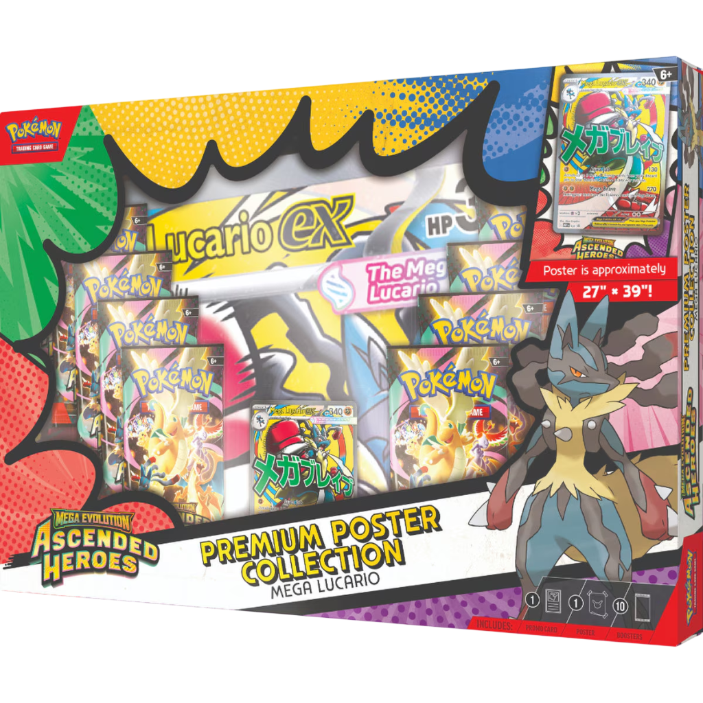 The Pokémon TCG: Mega Evolution–Ascended Heroes Premium Poster Collection–Mega Lucario includes: